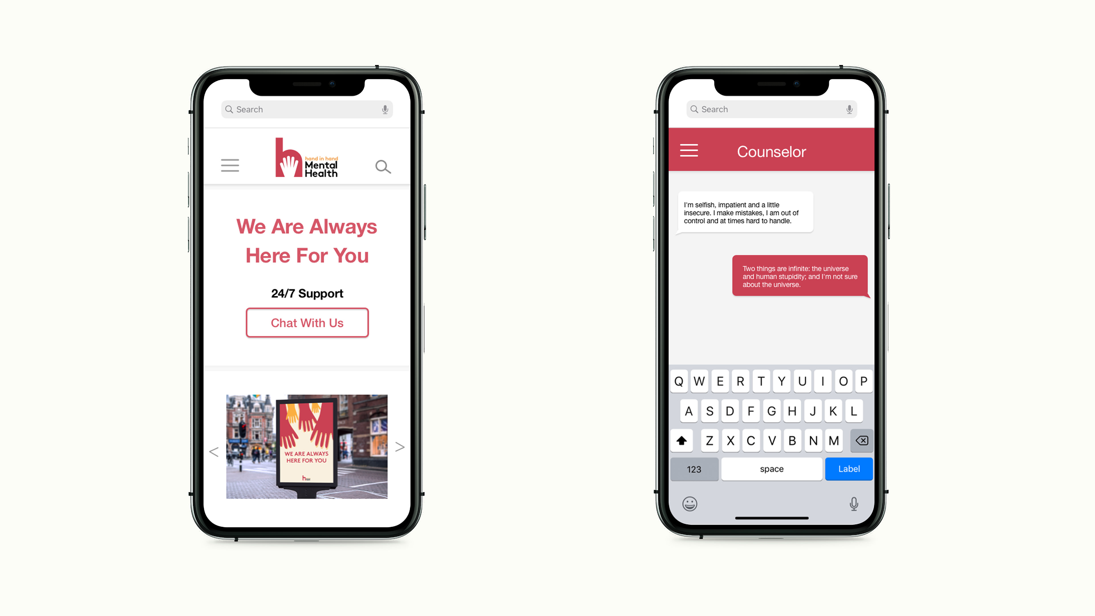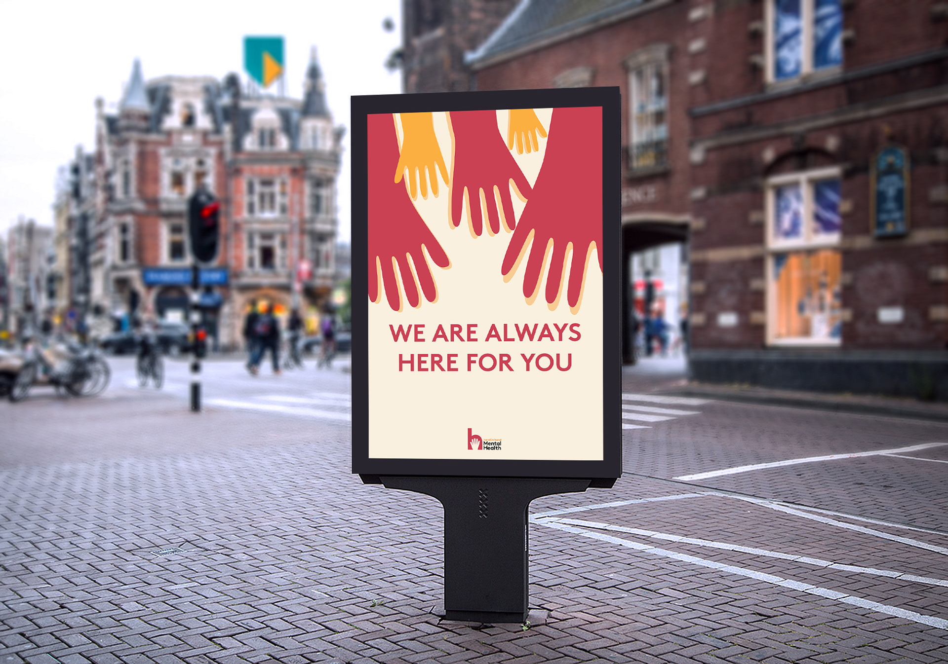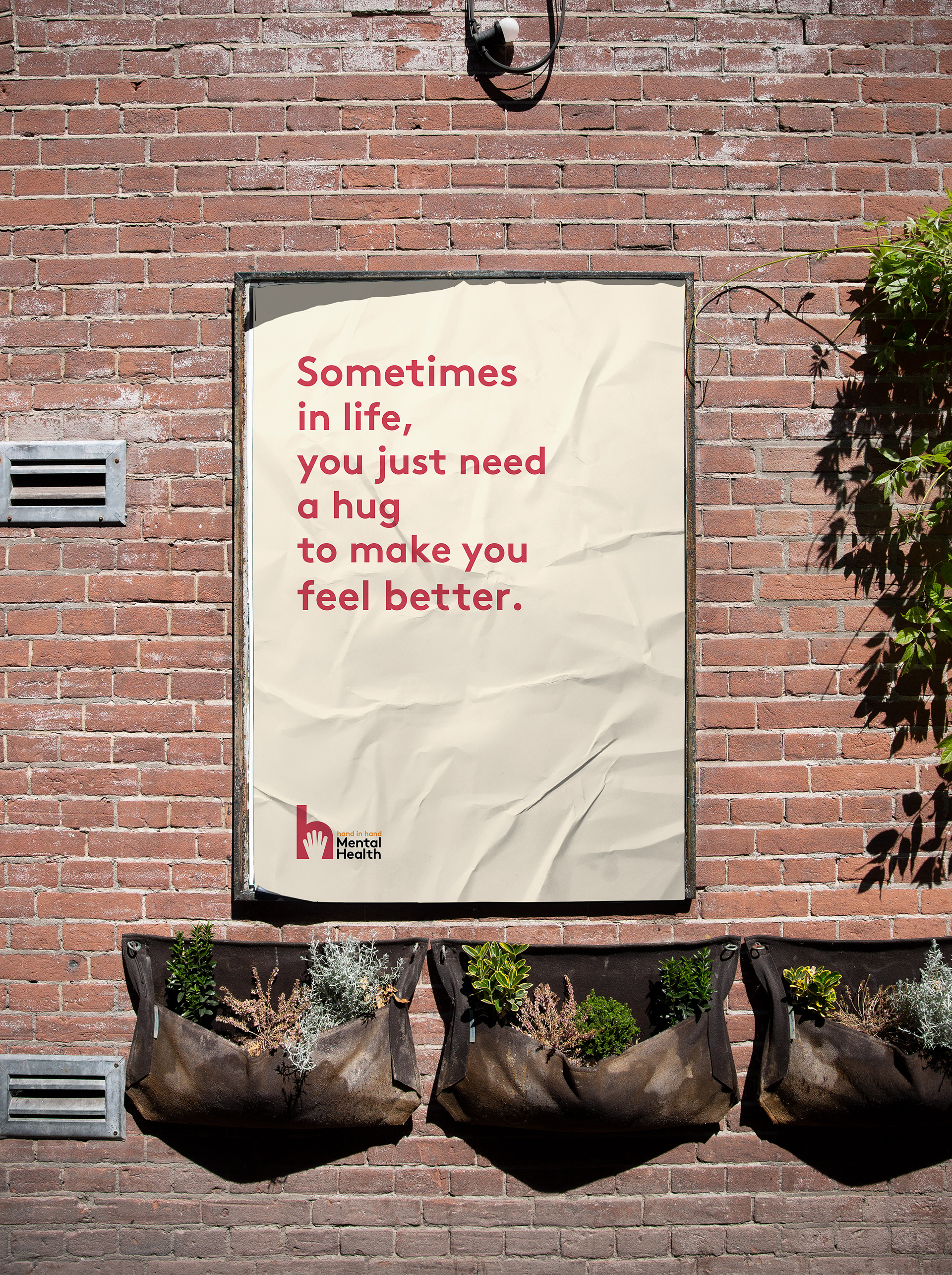Hand in Hand Mental Health organization is created based on the color brick red. This campaign will focus on making more people aware about mental health, and knowing about this organization.